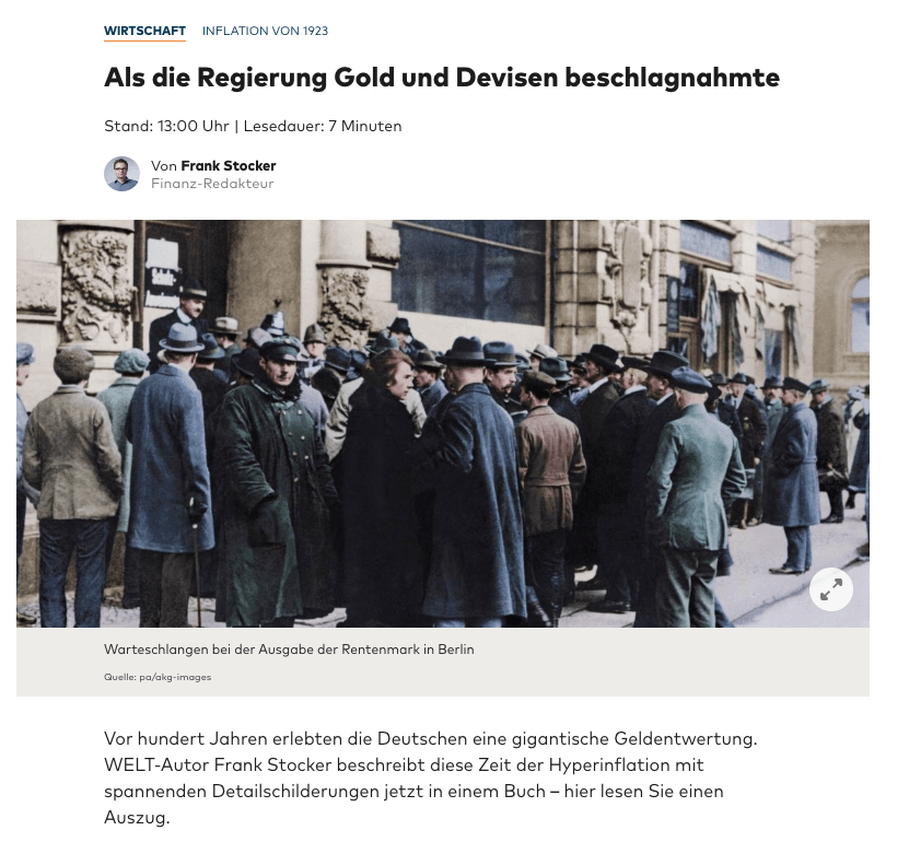 Vor 100 Jahren nahm die Inflation in Deutschland richtig Fahrt auf. Wie sah das konkret aus? Was waren die Ursachen? Wie erlebten das die Menschen? Was waren die Folgen? Ein 52-minütiges Interview mit dem Autor dieser Seite zu dem Thema, von den Machern von @BTCVerstehenPod