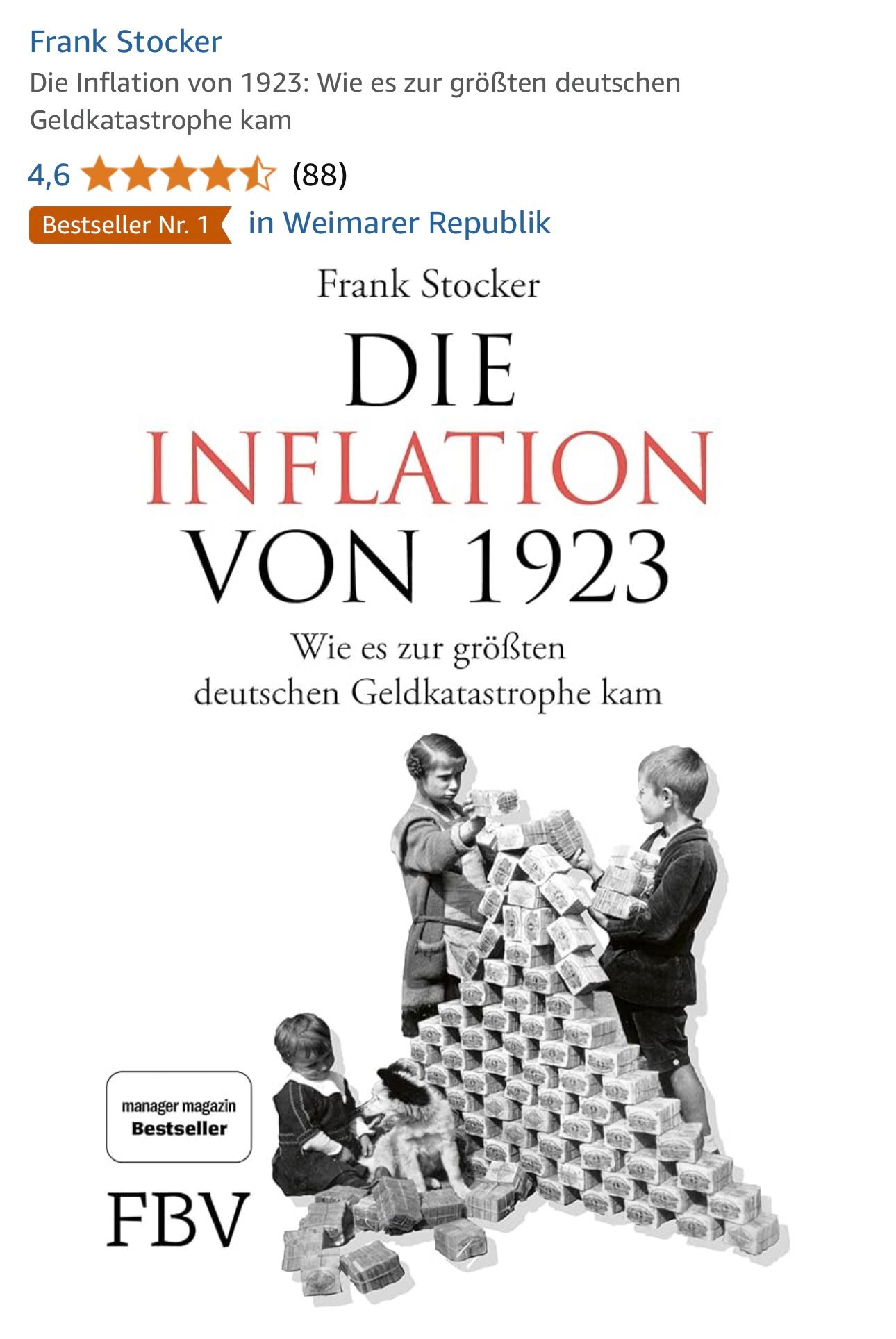 "Frank Stocker beschreibt unglaublich spannend die Ursachen und Gründe der Inflation von 1923. Die Zusammenhänge sind mir nun klar und helfen gut bei der Einordnung heutiger Fragen. Insgesamt ein super Buch."